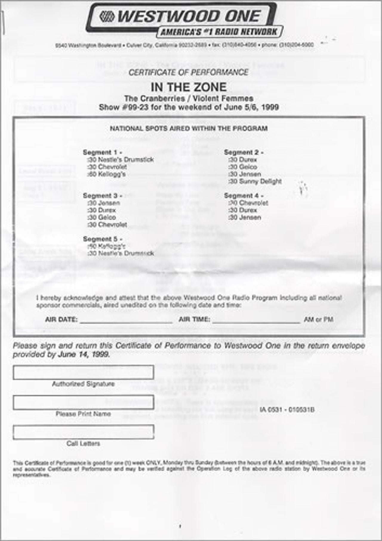 VIOLENT FEMMES In The Zone (US Westwood One CD-R acetate