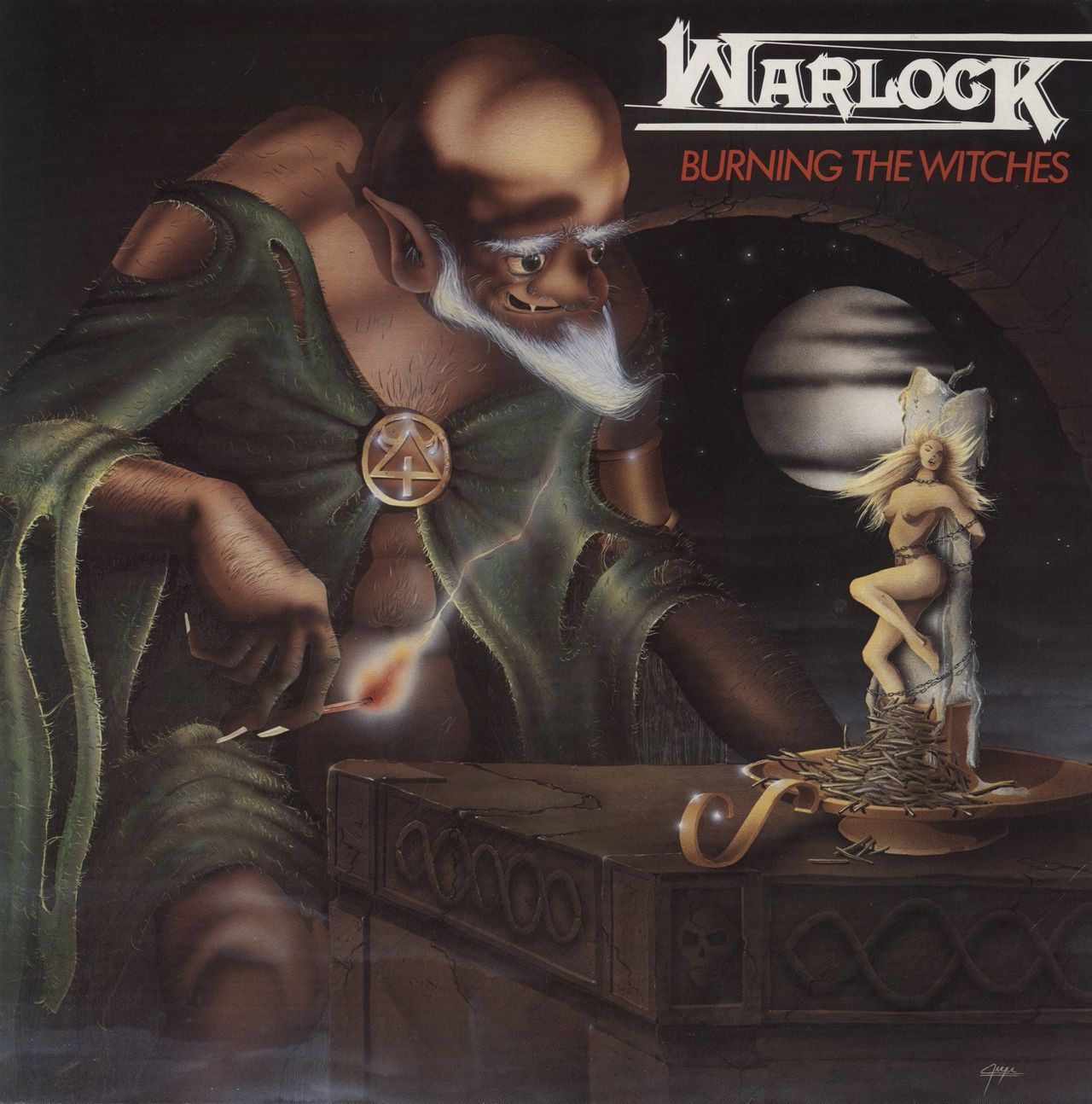 WARLOCK Burning The Witches (1984 Belgium 9-track LP on the Mausoleum Records label, the debut album from the German metallers. The glossy picture sleeve is Excellent [tiny thumbnail tear in back opening] with very little shelf wear & the vinyl is clean & in Excellent condition with only minor evidence of play SKULL8325)