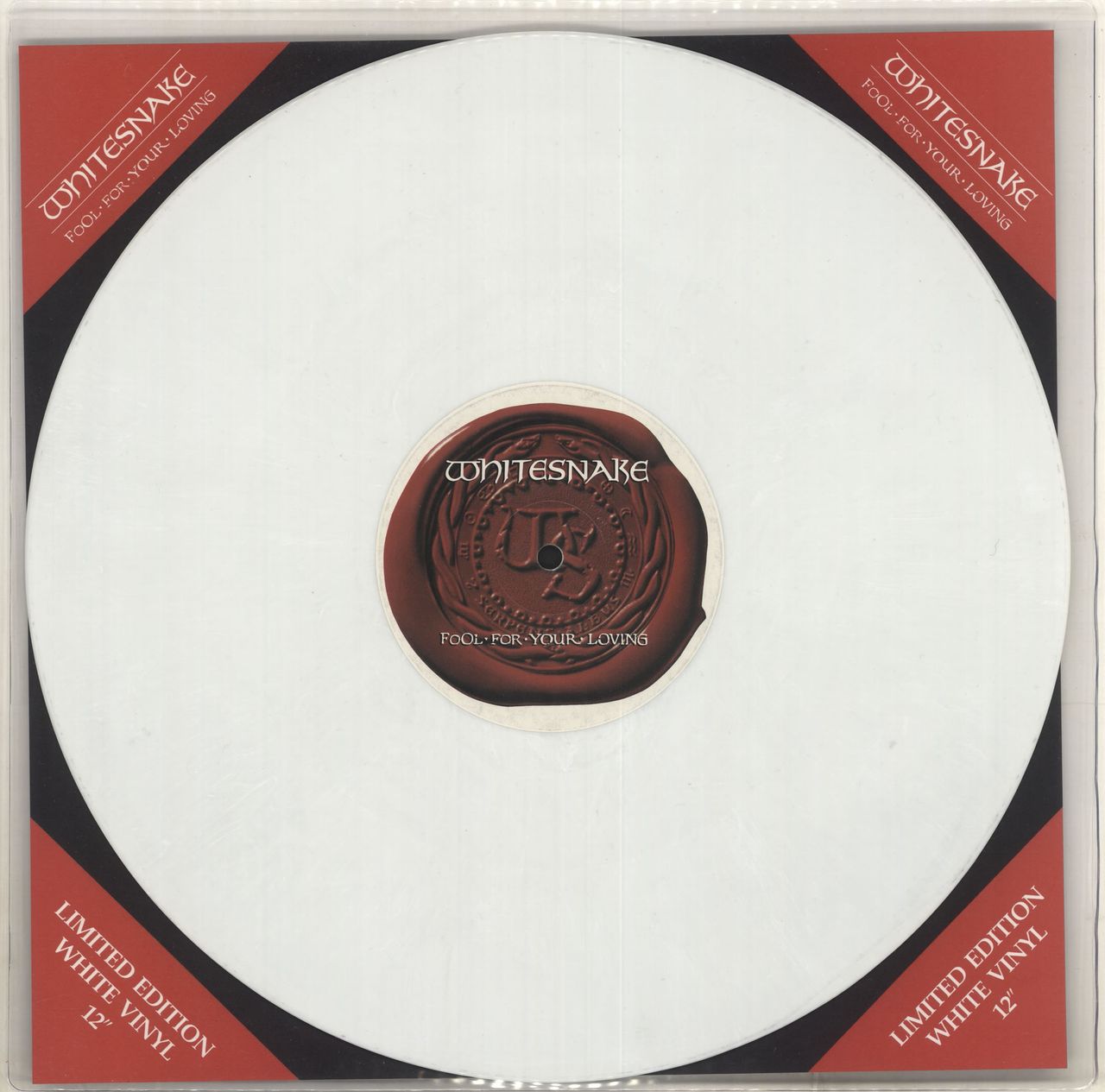 WHITESNAKE Fool For Your Loving (1989 UK limited edition 3-track 12" single pressed on White Vinyl, also including Slow Poke Music & a live version of Walking In The Shadow Of The Blues, clear sleeve with back insert 12EMS123)