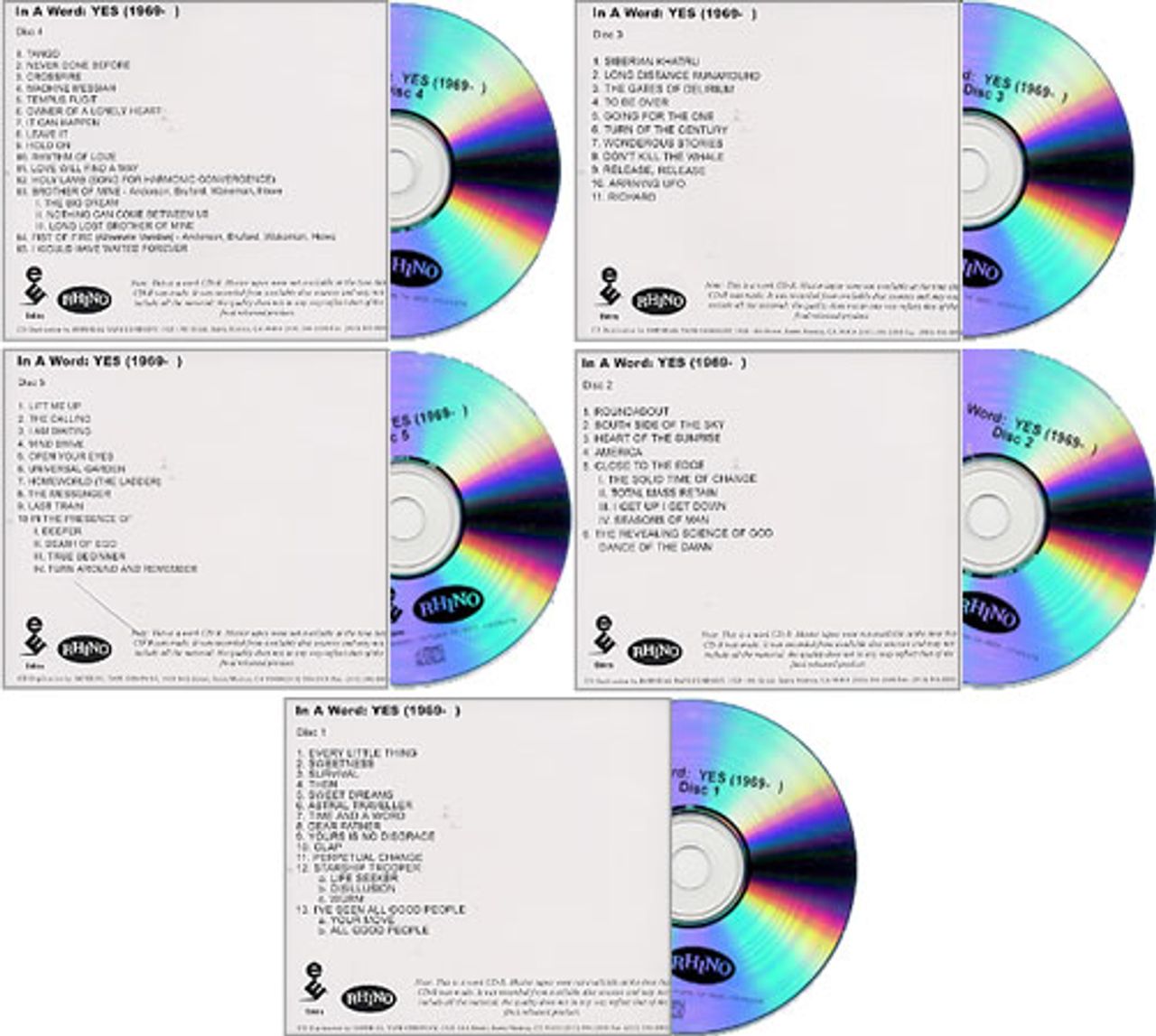 Yes In A Word - Set of 5 x CDRs US Promo CD-R acetate