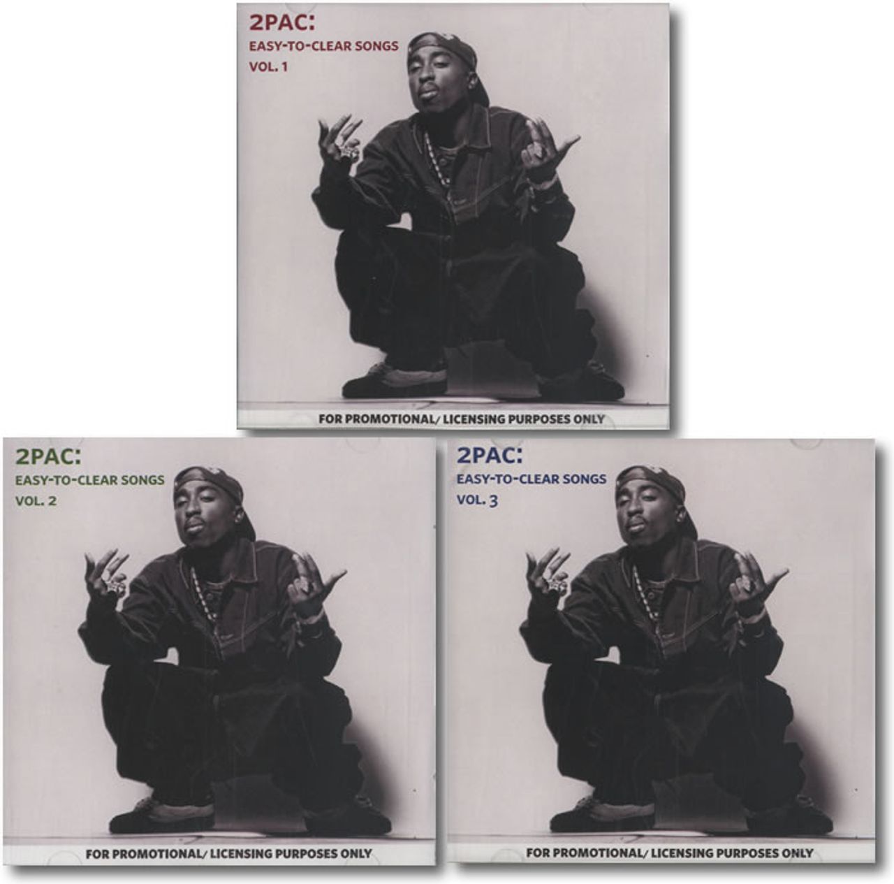 2 PAC Easy-To-Clear Songs - Vol. 1-3 (Genuine 2008 Universal/Evergreen USA CDRs - one for each of Vol. 1, Vol. 2 and Vol, 3. Each disc is custom printed and this set was intended for radio and reviewers alike but was not commercially available. Each disc is housed in a standard jewel case complete with its custom promo picture and tracklisting insert sheet. A hard to find, complete set of rare CDRs)