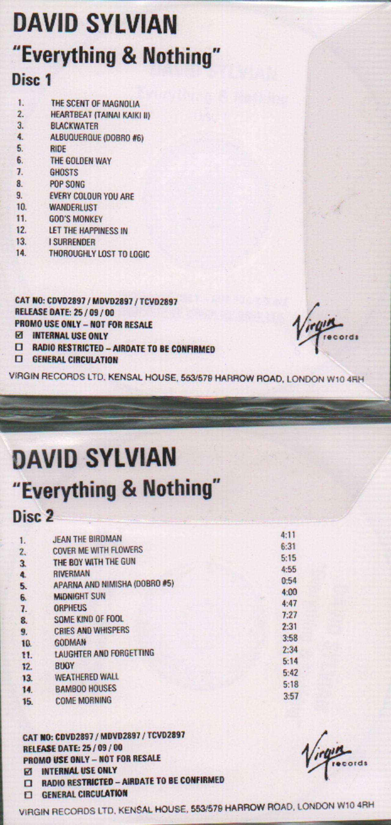 David Sylvian Everything & Nothing - 2 CD-R set UK Promo CD-R acetate