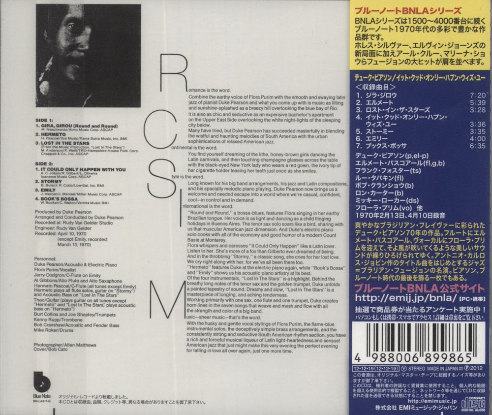 DUKE PEARSON It Could Only Happen With You ( 2009 Japanese Hi Quality remastered 7-track CD album. Comprising of songs such as: "Hermeto" and "It Could Only Happen With You". Housed inside a jewel case with picture sleeve and Blue Note obi strip)