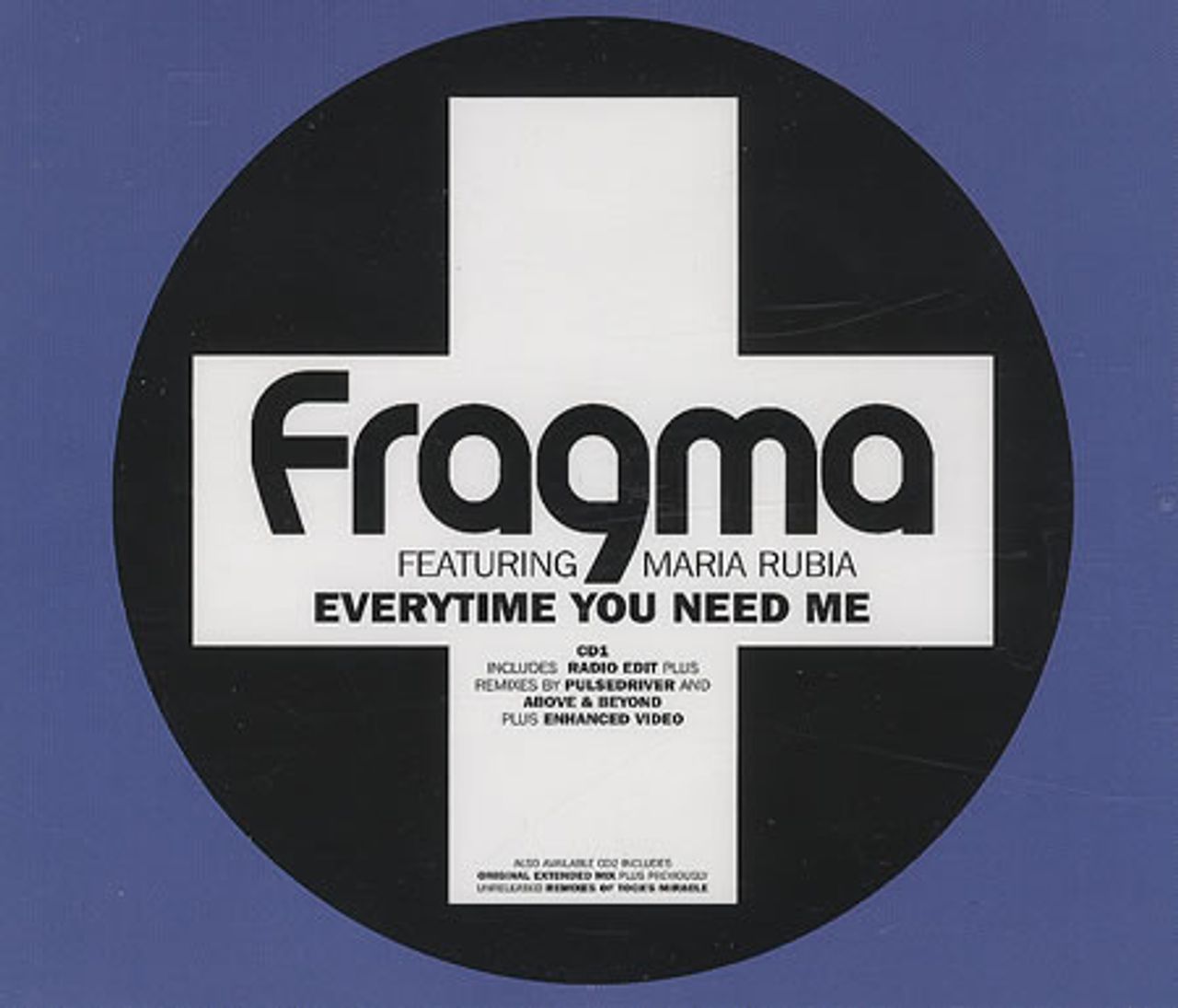 FRAGMA Featuring MARIA RUBIA Everytime You Need Me (Deleted 2000 UK 4-track enhanced CD single includes Radio Edit, Pulsedriver Vocal Remix, Above & Beyond Remix and CD-Rom Video, complete with picture sleeve CDTIVS-147)