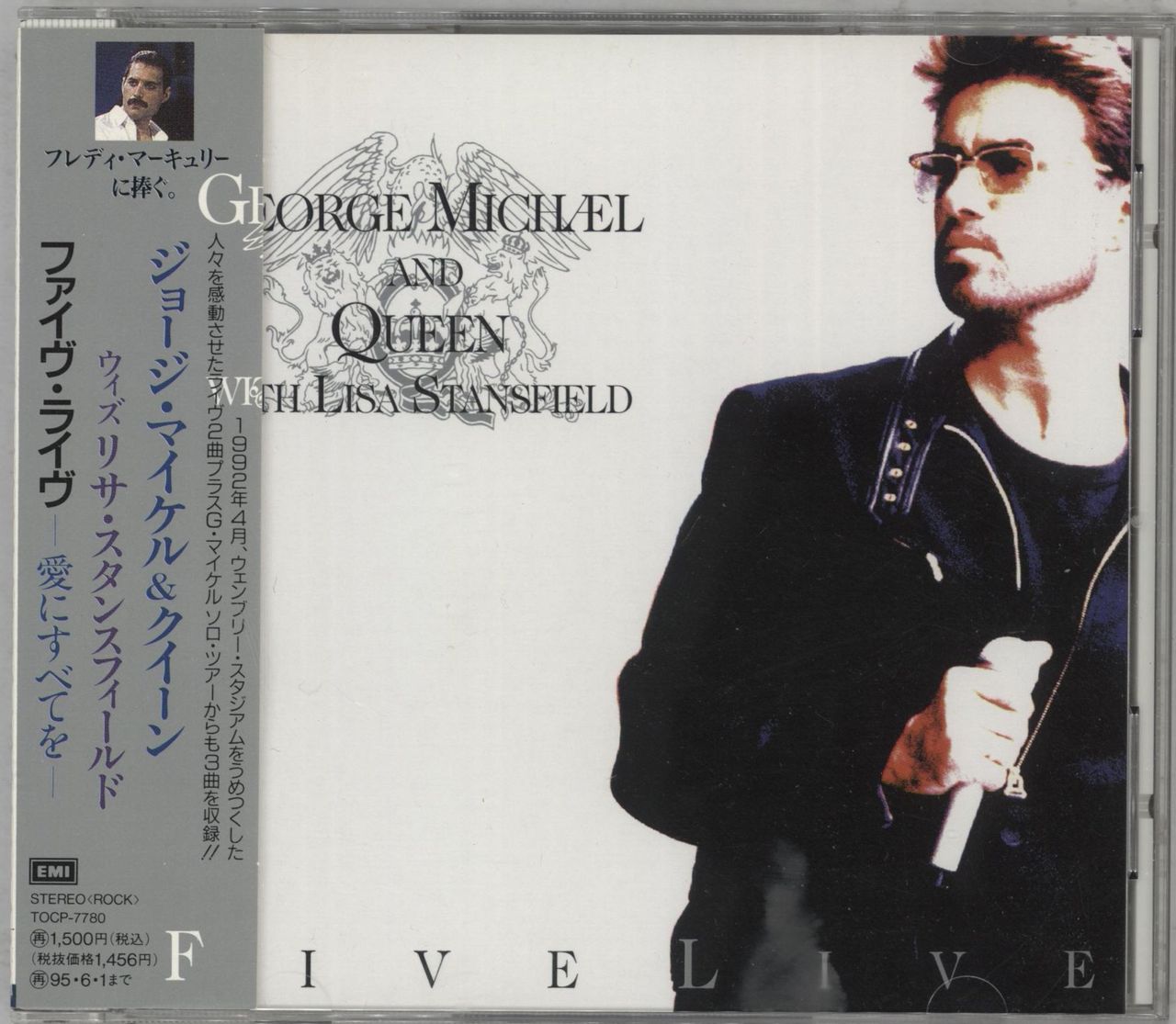 GEORGE MICHAEL and QUEEN Five Live (1992 Japanese 6-track CD EP including Dear Friends, Somebody To Love & These Are The Days Of Our Lives with Lisa Stansfield, George Michael picture sleeve with lyric booklet plus 'Freddie' picture obi-stripTOCP-7780)