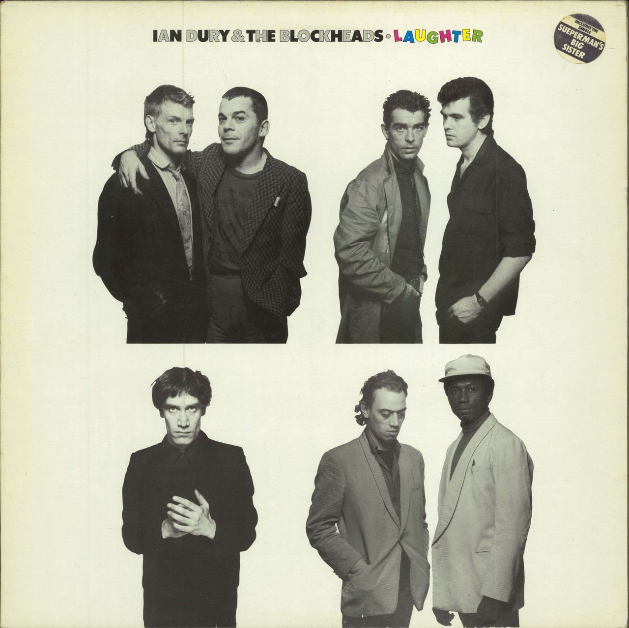 IAN DURY & THE BLOCKHEADS Laughter (1980 UK 12-track LP, housed in a hype stickered sleeve with the 'Ministry Of Adults' warning sticker on the back for Side 2, complete with the Ian Dury & Davey Payne picture inner [there are up four inner sleeve variants for this title!]. The sleeve shows minimal wear, the vinyl appears barely played SEEZ30)