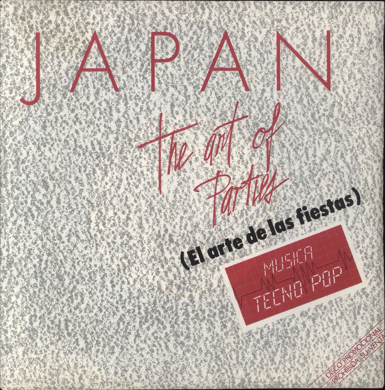 JAPAN El Arte De Las Fiestas (Rare 1981 Spanish exclusive promotional-only vinyl 7" with custom black & white wide centred labels, including The Art Of Parties and Visions Of China. Issued in the unique picture sleeve with 'Musica Tecno Pop' flash. The flimsy sleeve shows only minor wear and the vinyl appears in near as new condition. Also includes a 1-page press release with Spanish text)