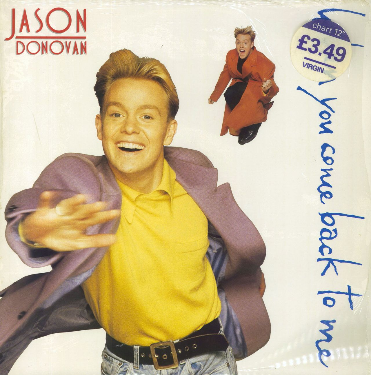 JASON DONOVAN When You Come Back To Me (1989 UK 3-track 12" vinyl single, including the Extended, 'No Probs' & Instrumental mixes. The glossy picture sleeve comes in a opened shrink wrap with vintage price sticker, but the vinyl remains in excellent condition PWLT46)