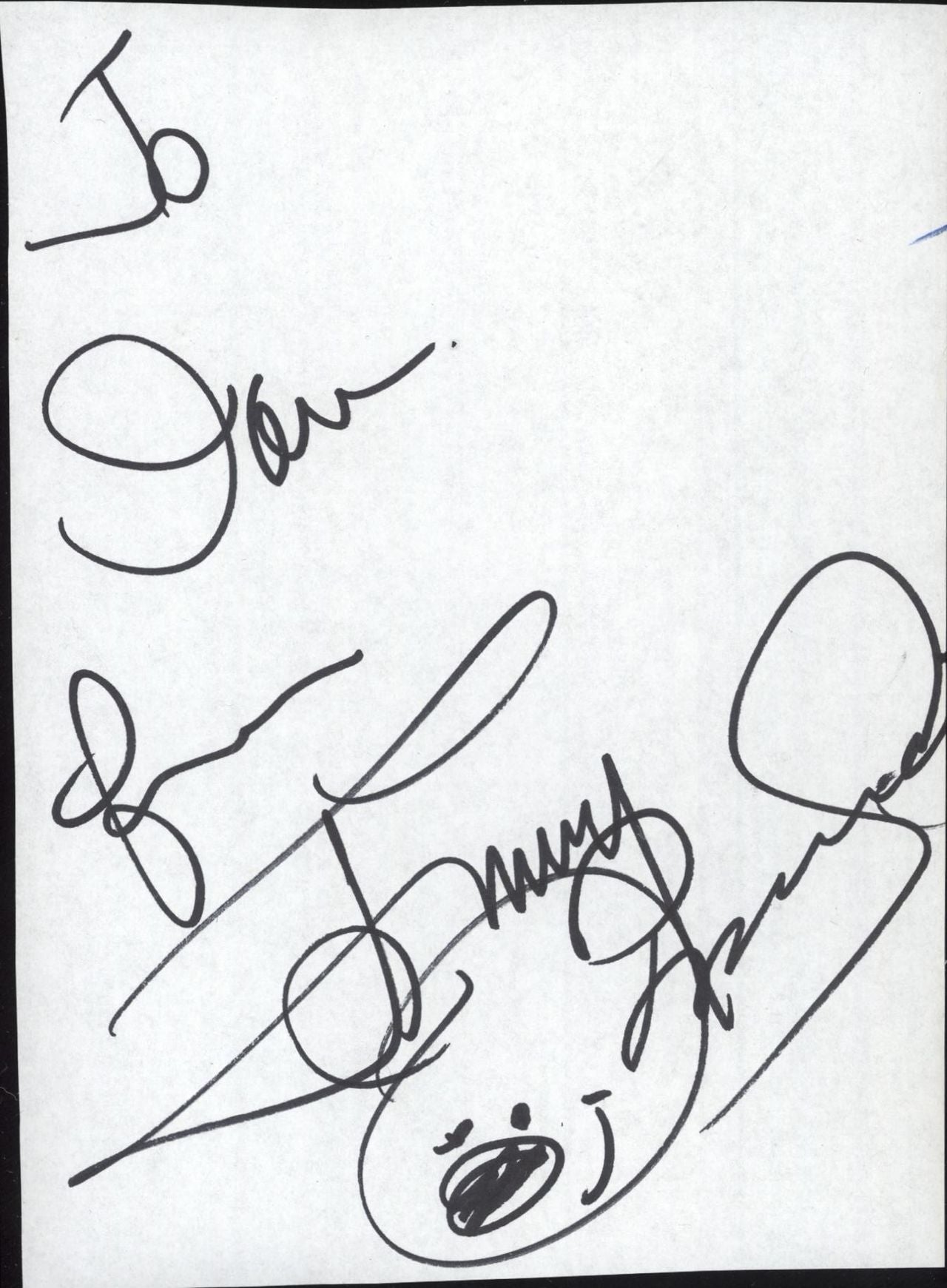 JIMMY OSMOND Autograph (A genuine signed page from an autograph book, boldly signed and dedicated in black marker pen by Jimmy Osmond. This signature was obtained by the previous owner outside the stars hotel whilst they were on tour. This would look fantastic framed with your favourite album artwork or photograph)
