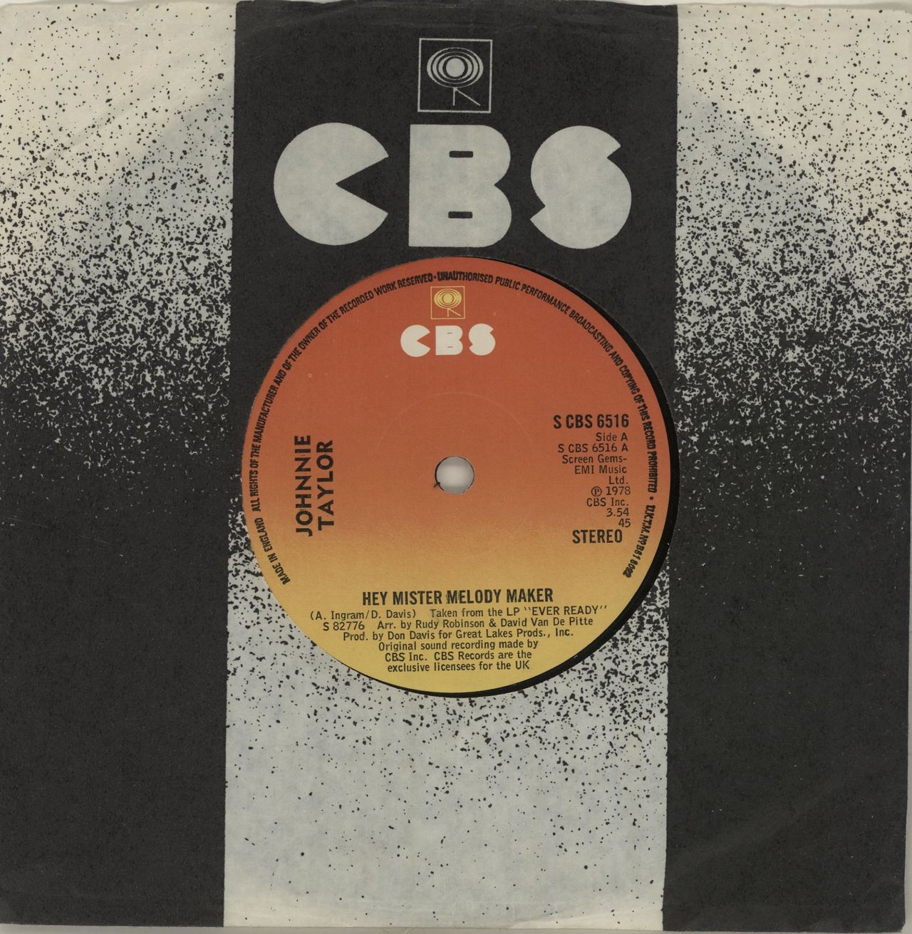 centre 7" vinyl single, also including Give Me Baby, housed in
