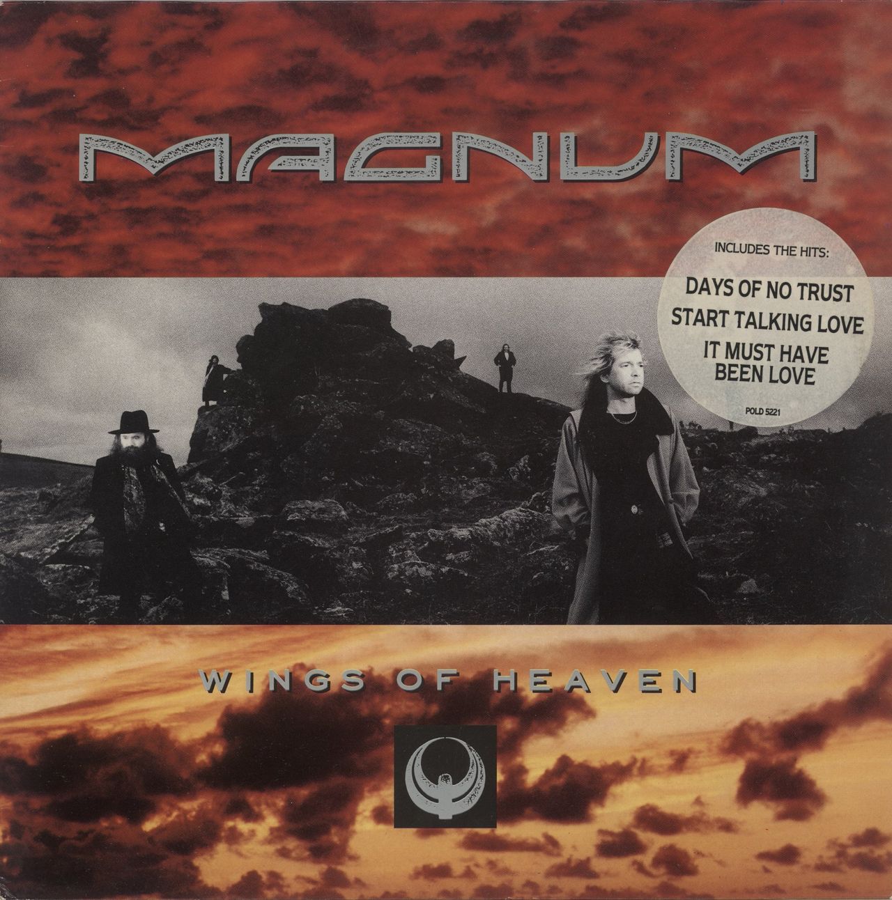 MAGNUM Wings Of Heaven (1988 UK 8-track vinyl LP, the seventh studio album from the British melodic rockers, including the singles Days Of No Trust, Start Talking Love and It Must Have Been Love. Housed in a striking silver embossed picture sleeve with the original three-song hype sticker on the front and complete with the illustrated lyric inner. The sleeve displays only minor shelfwear, with a touch of light foxing to the inner, while the vinyl remains in Excellent condition with minimal signs of play POLD5221)