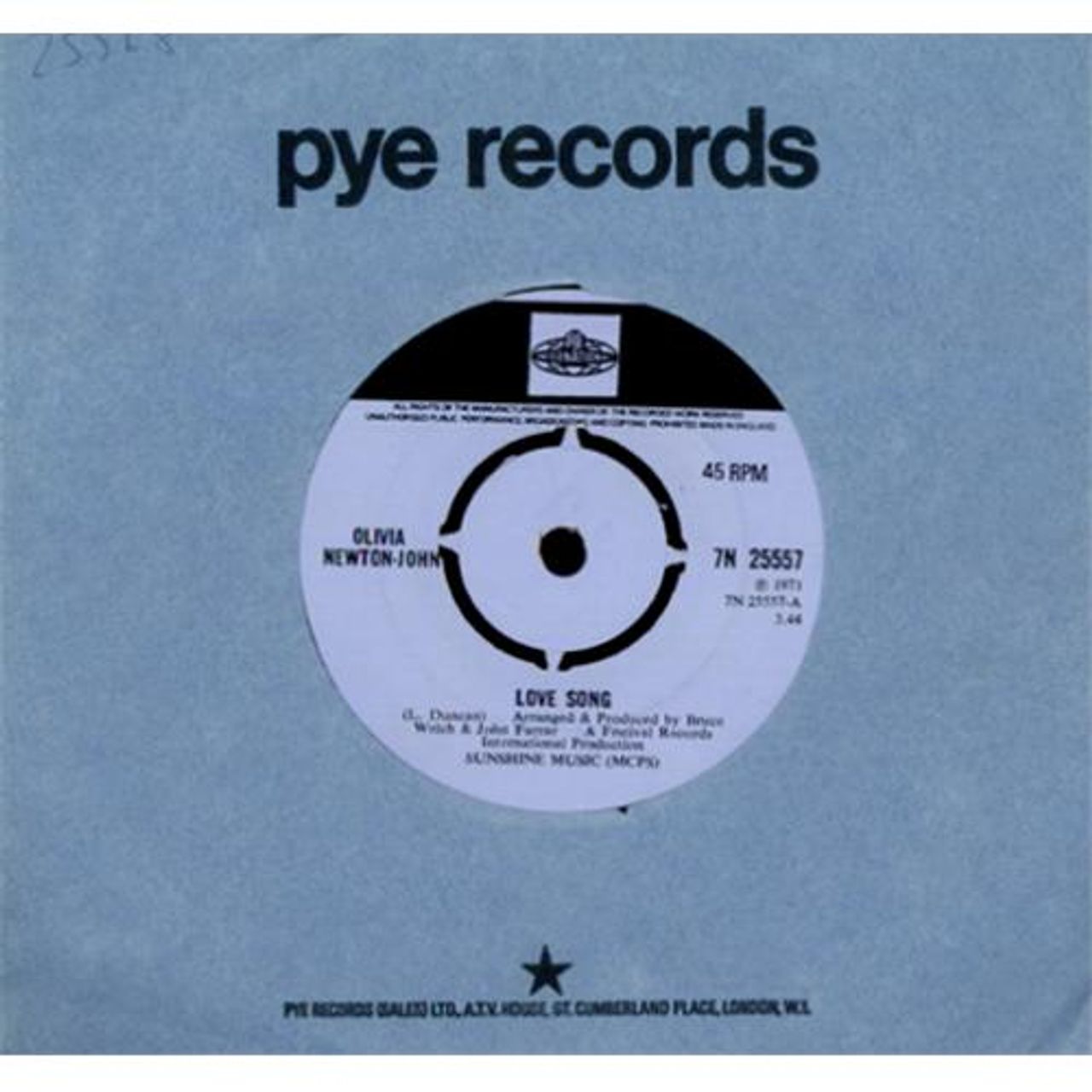OLIVIA NEWTON JOHN Love Song (1971 UK 7" single with intact four prong centre, also including It's So Hard To Say Goodbye, Pye company die-cut paper sleeve 7N25557)