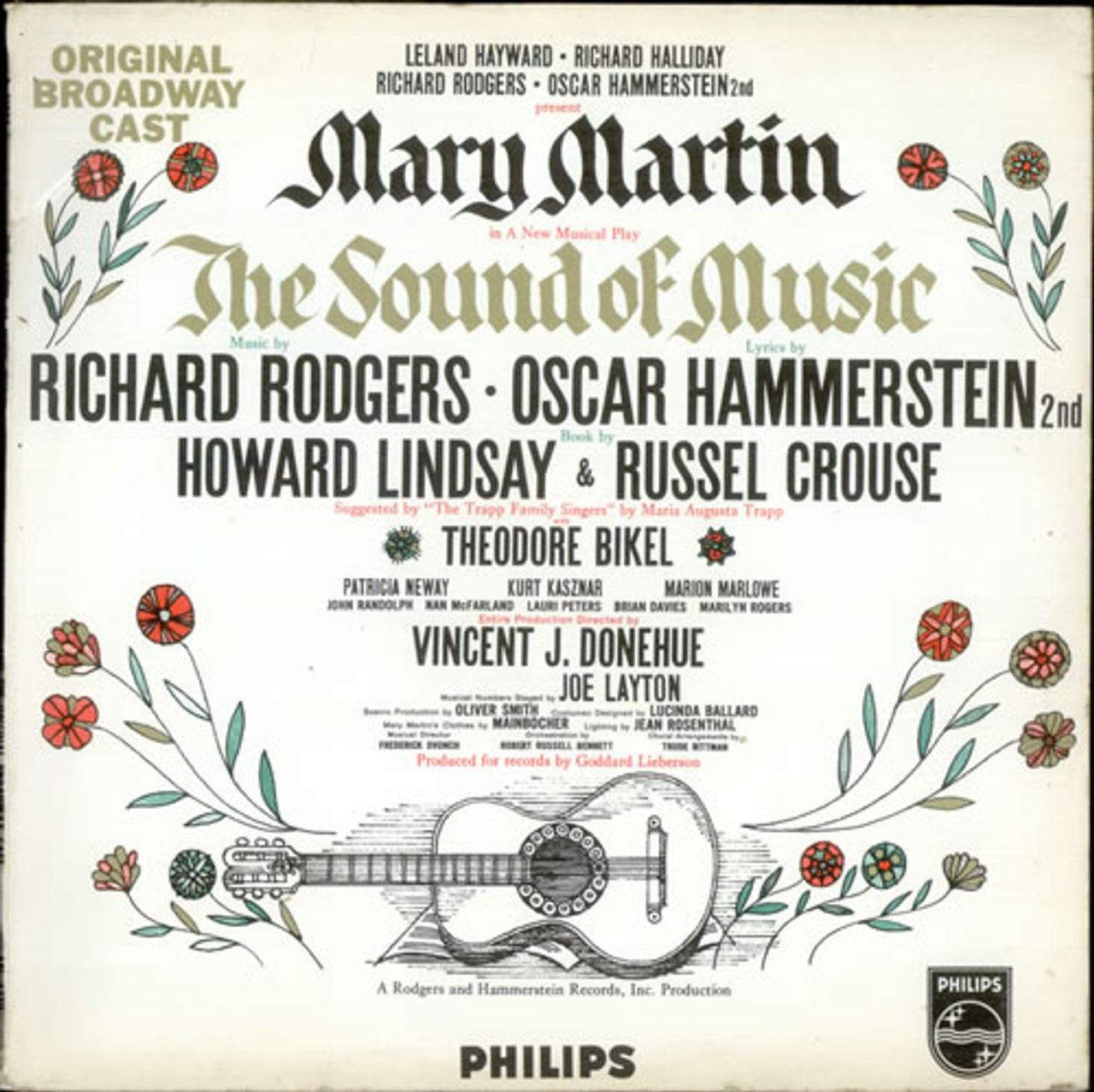 ORIGINAL CAST RECORDING The Sound Of Music (1959 UK 17-track mono LP, featuring the original Broadway cast recording of the Rogers & Hammerstein musical starring Mary Martin, Theodore Bikel. Kurt Kasznar, Patricia Neway and Marion Marlowe, laminated gatefold sleeve with pinched spine. The sleeve has a small tear to the reverse and the vinyl is Excellent with few signs of play ABL3370)