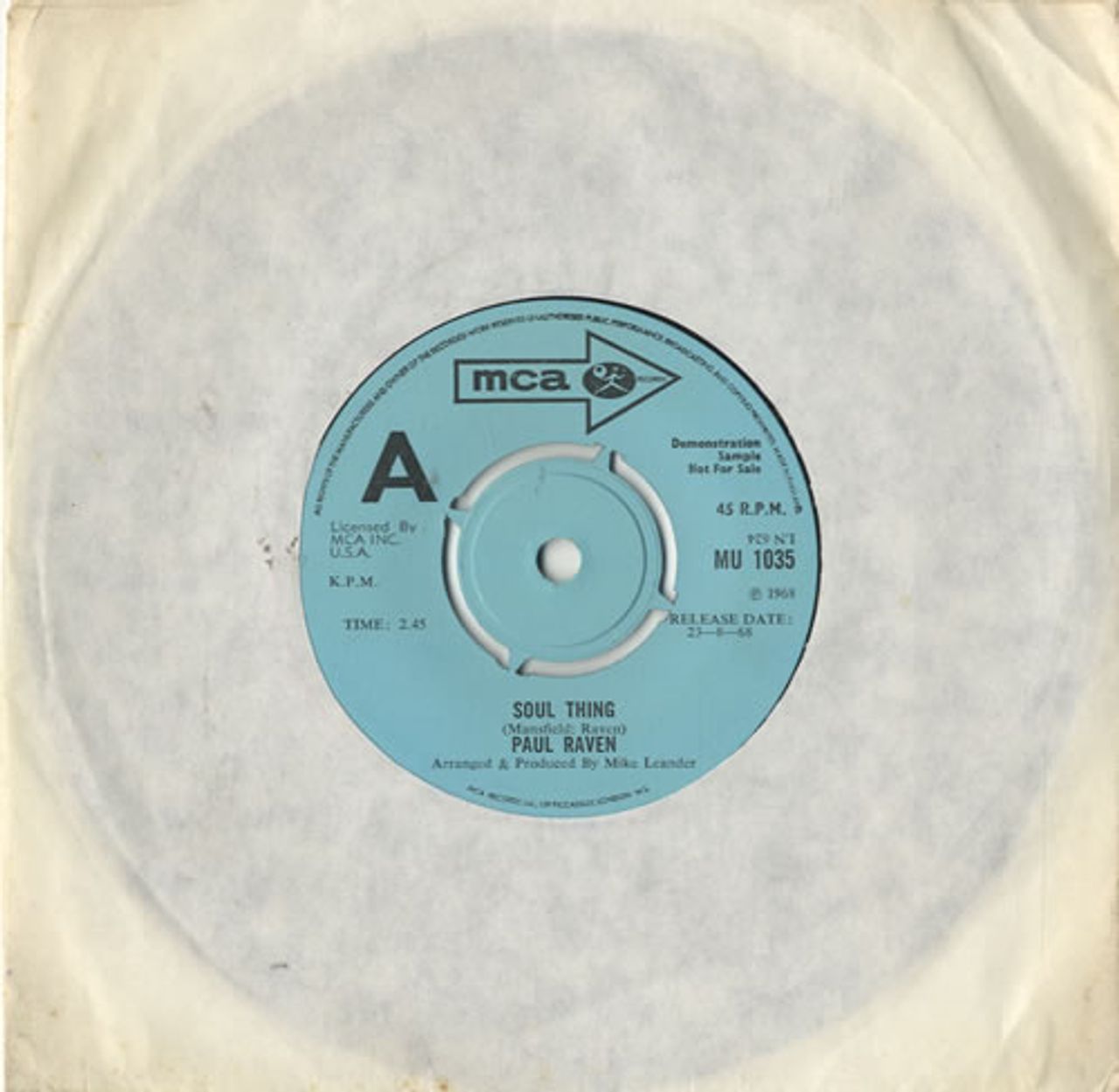 PAUL RAVEN Soul Thing (Rare 1968 UK 'A' label
