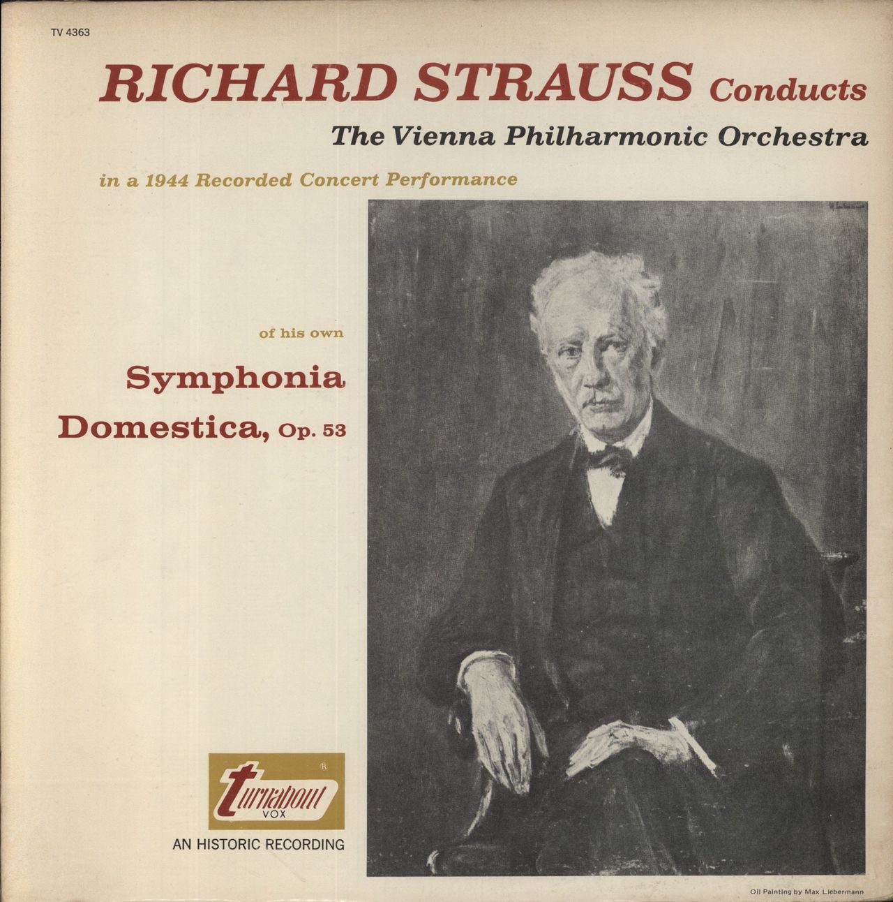 RICHARD STRAUSS conducts THE VIENNA PHILHARMONIC ORCHESTRA Richard Strauss Conducts Richard Strauss (Symphonia Domestica, Op. 53) (1960s US 2-part mono vinyl LP, pasted picture sleeve. The sleeve shows light wear and the vinyl appears barely played TV363)