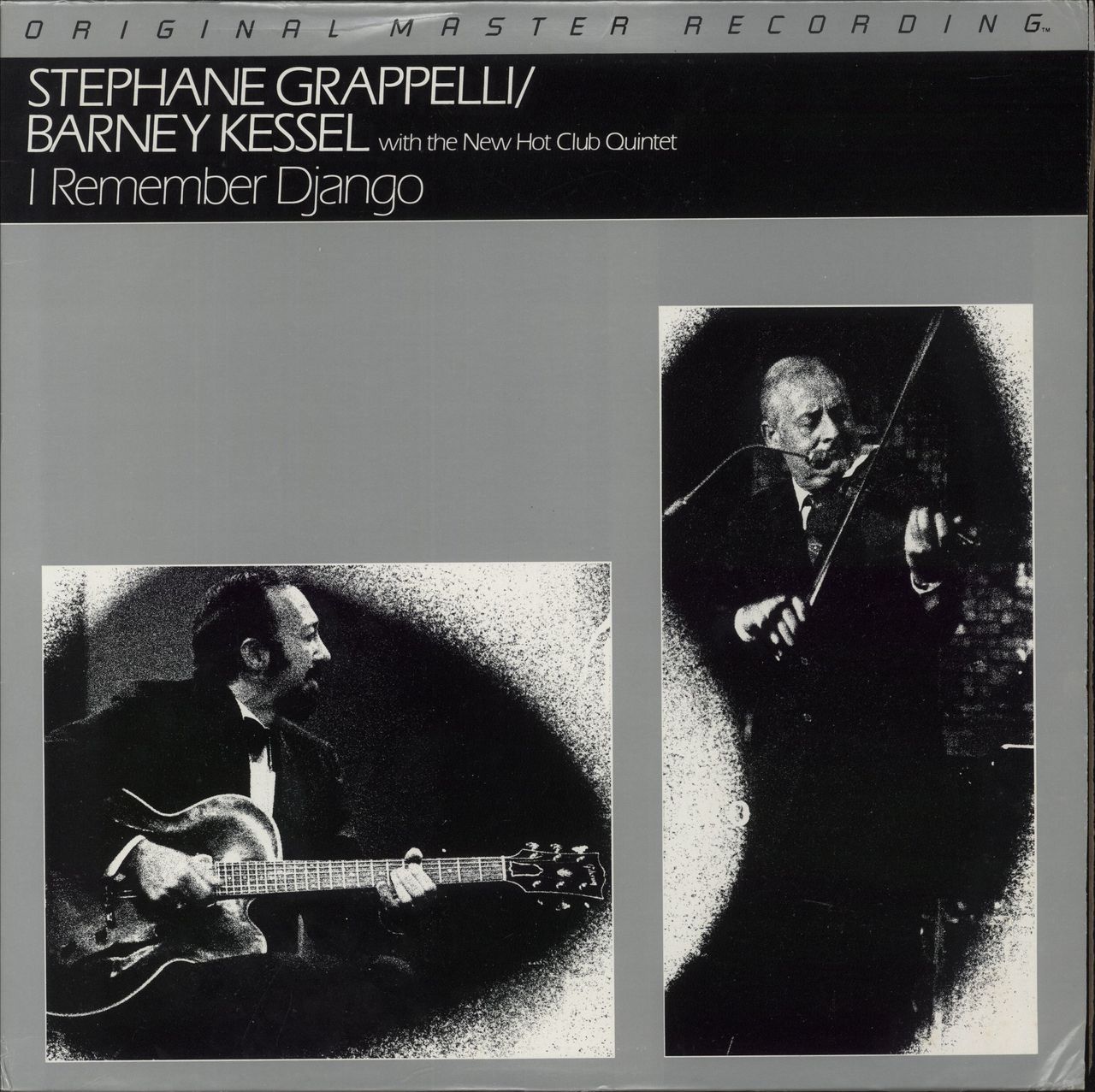 STÉPHANE GRAPPELLI I Remember Django (1983 US Limited Edition 8-track vinyl LP, heavyweight picture sleeve. A wonderful half-speed mastered issue of the 1971 album, recorded with The New Hot Club Quintet including Nini Rosso on rhythm guitar,Michel Gaudry on bass & Jean-Louis Viale on drums. A nice tribute to the greatest guitaristin jazz. The sleeve is Excellent [just a little creasing in places] and the vinyl is Near Mint MFSL1-111)
