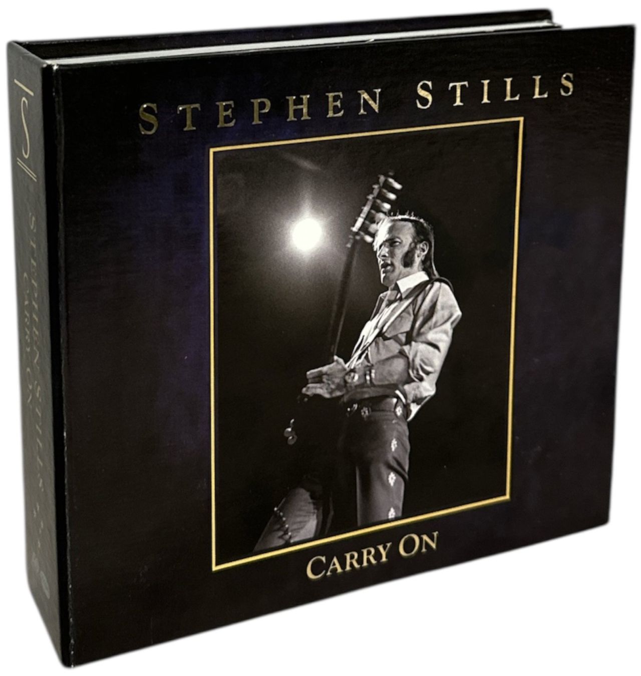 STEPHEN STILLS Carry On (2013 US 82-track 4-CD career retrospective set - Compiled by band mate Graham Nash, the collection highlights from his career as a solo artist and with groups including The Au Go Go Singers, Buffalo Springfield, Manassas, and various permutations of CSN&Y. The tracks are arranged in general chronological order of release and also includes previously unreleased material. The four discs are housed in the hardback packaging complete with concertina fold-out digipak trays and comes complete with the 113-track picture booklet containing extensive sleevenotes and more)