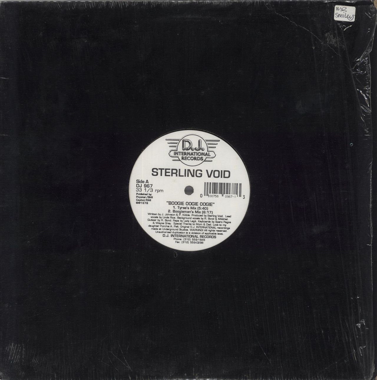 STERLING VOID Boogie Oogie Oogie (1978 US 4-track 12" vinyl single, includes Tyree's Mix, Boogieman's Mix, Loftis Hip House Mix and Loftis Club Mix, plain die-cut sleeve. The vinyl is Near Mint DJ967)