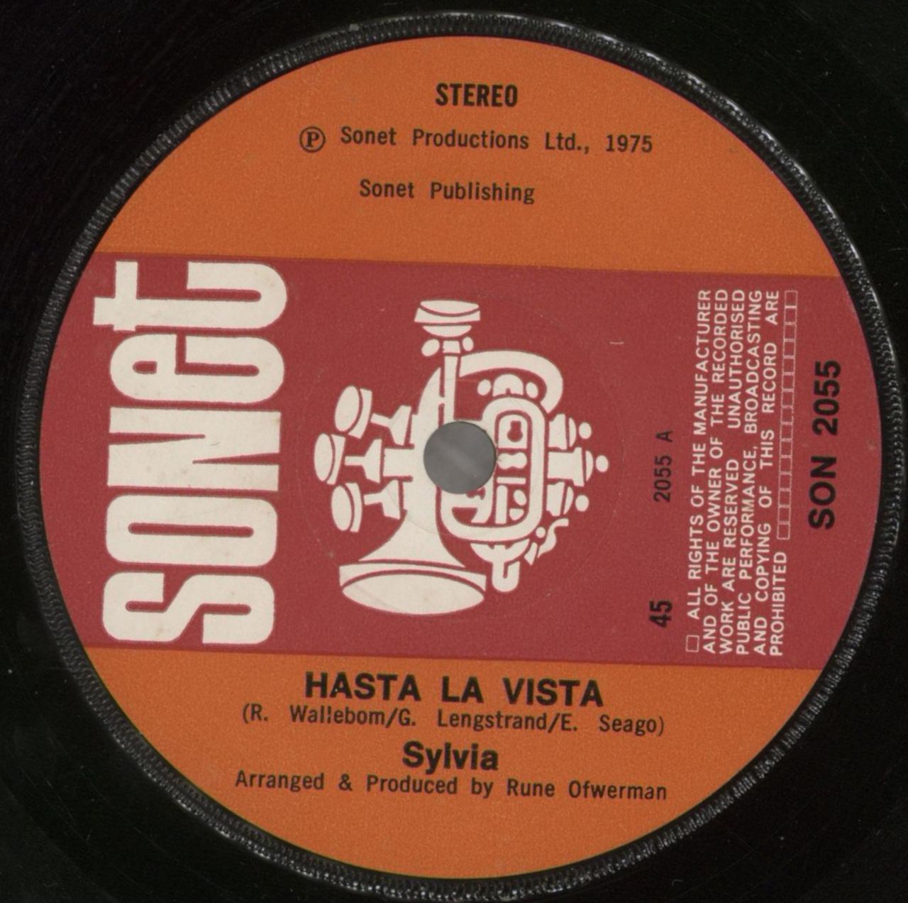 SYLVIA VRETHAMMAR Hasta La Vista (1975 UK 7" vinyl single, also including Follow Me, plain die cut paper sleeve SON2055)
