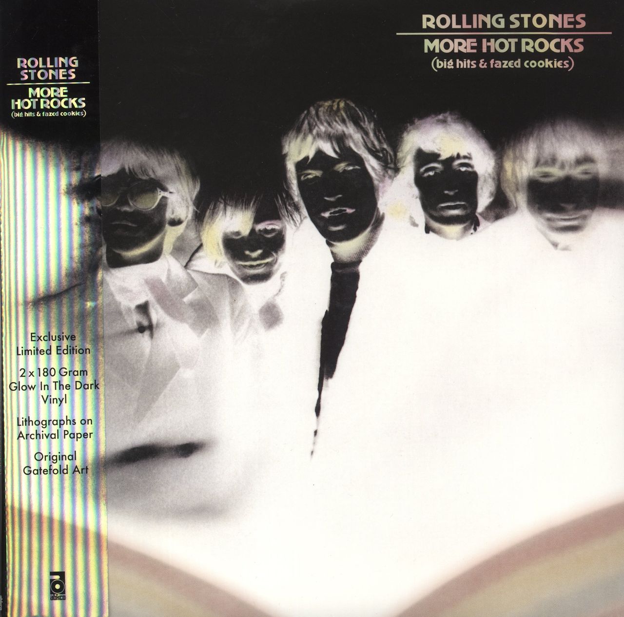 THE ROLLING STONES More Hot Rocks - Big Hits & Fazed Cookies (Limited Edition 2022 UK/EU 25-track double LP pressed on Heavyweight Glow-In-The-Dark Vinyl, exclusive to Record Store Day. The classic 1972 compilation is remastered here bythe legendary Bob Ludwig & cut at Abbey Road Studios, complete with bonus Gered Mankowitz lithographs on archival paper. Comes housed in a deluxe gatefold picture sleeve with original artwork & an exclusive metallic-effect wrap-around obi-style strip. Limited to 2000 copies in the UK, the packaging & the vinyl is Near Mint)