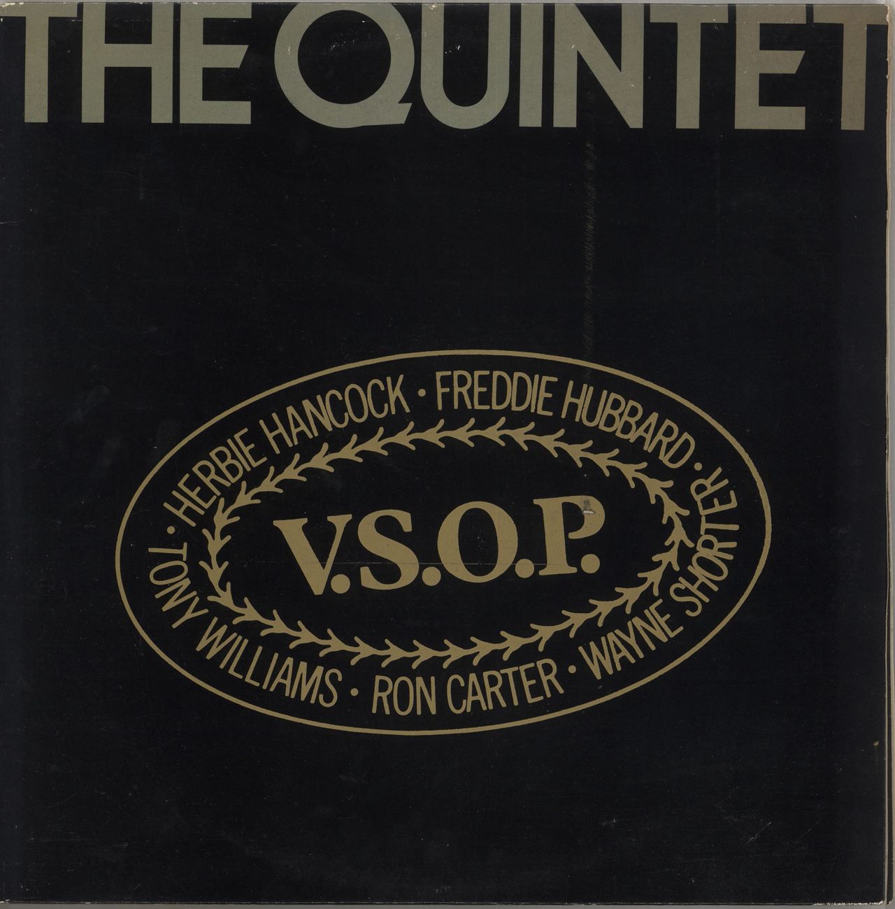 V.S.O.P. The Quintet (1977 UK 8-track double LP recorded live at The Greek Theatre & San Diego Civic Centre in California in July 1977 & featuring the stellar quintet of Herbie Hancock, Freddie Hubbard, Wayne Shorter, Ron Carter & Tony Williams. The gatefold picture sleeve is Excellent with some minor shelf wear scuffing & both vinyl discs are in Excellent condition)