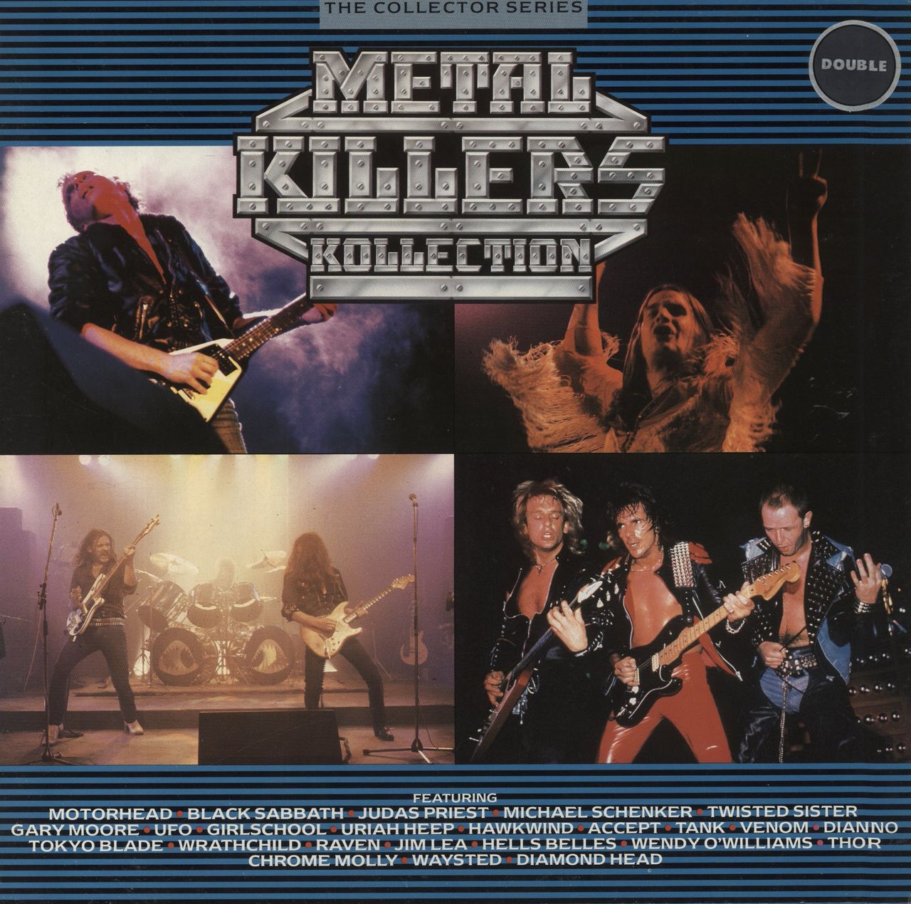 VARIOUS Metal Killers Kollection (1985 UK 24-track double LP, a collection of classic rock & metal hits from Black Sabbath, UFO, Judas Priest, Motörhead, Girlschool, Hawkwind, Venom, Gary Moore & more, gatefold picture sleeve with live performance stills inside. The sleeve displays some light shelf wear scuffing & the vinyl is clean & in Excellent condition with minimal play CCSLP112)
